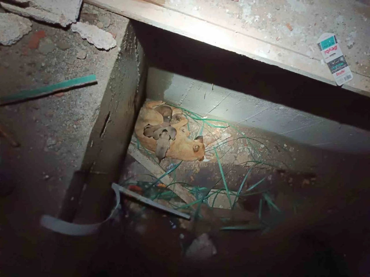 Erzurum’da asansör boşluğunda mahsur kalan yavru köpekler ve annesi itfaiyenin çalışması sonucu kurtarıldı.