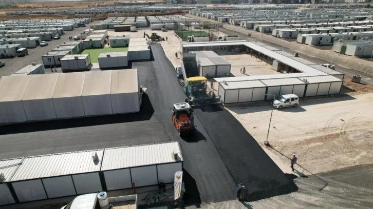 Adıyaman Belediyesi Fen İşleri Müdürlüğü ekipleri tarafından toplu yaşam alanları olan konteyner kentlerde asfaltlama çalışmaları devam ediyor.