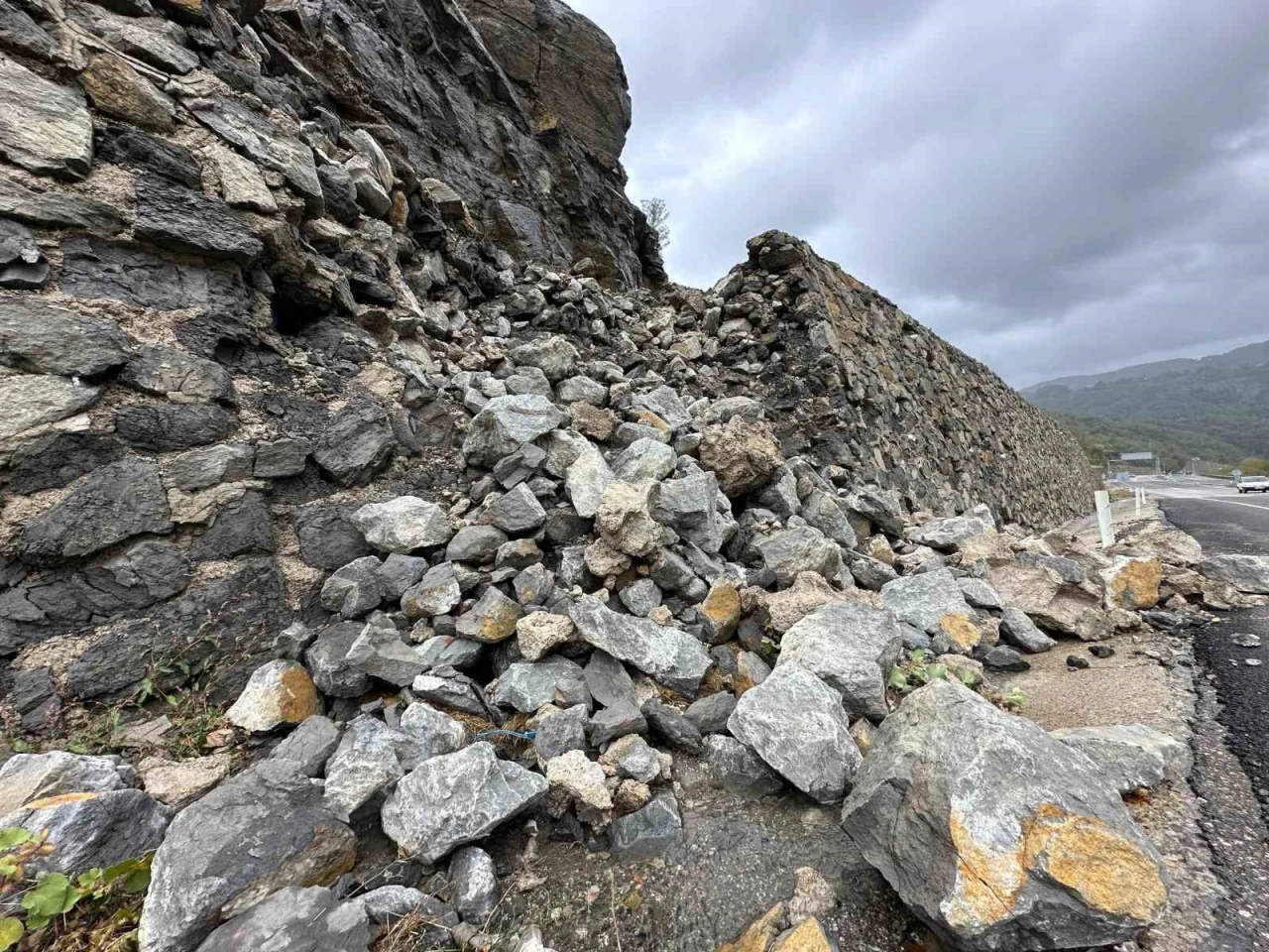 Zonguldak’ta etkili olan aşırı yağışlar, Ankara kara yolu üzerindeki bir istinat duvarının bir bölümünün yıkılmasına neden oldu. Yıkılan duvar, yolun kenarında tehlike oluşturmasına rağmen, yol trafiğe kapanmadı. Sürücüler, özellikle bu bölgeden geçerken dikkatli olmaları konusunda uyarıldı.
