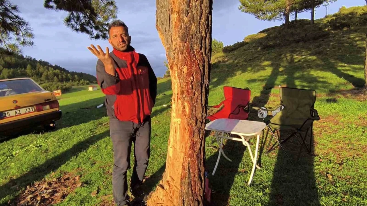 Erzurum’un Uzundere ilçesini Oltu’ya bağlayan Yayla Mahallesi ile Seyit Efendi Mahallesi mezrası arasında yer alan ormanlık alanda bulunan çam ağaçları, piknikçiler ve kampçılar tarafından çıra elde etmek amacıyla yontularak ciddi şekilde tahrip edildi.