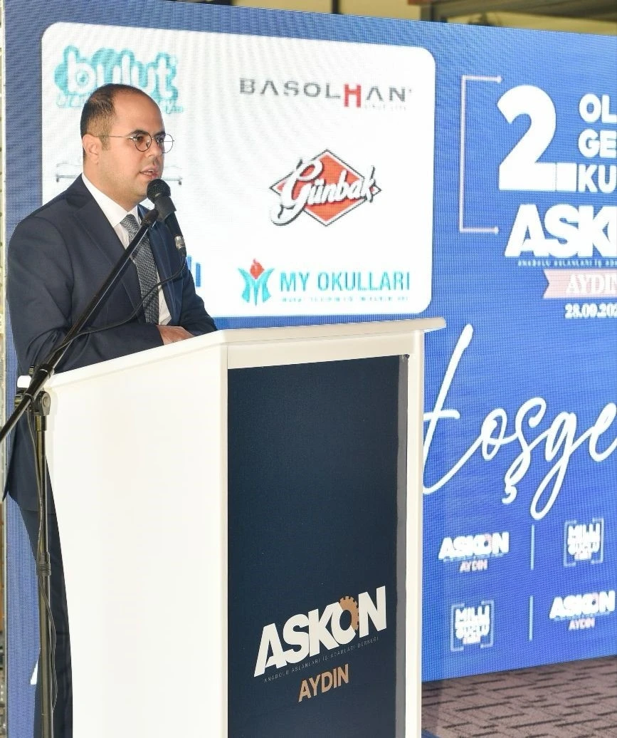 Türkiye’nin kalkınma hamlesinin, yerelden genele yayılması ve şehirlerin ekonomik gücünü artırması en büyük öncelikleri olduğunu kaydeden ASKON Aydın Şube Başkanı Murat Gün, "Bu kapsamda, Aydın’ımızın sahip olduğu ekonomik potansiyeli daha ileriye taşımak, sanayi, tarım ve turizm alanlarında hak ettiği noktaya ulaştırmak için hep birlikte çalışmalıyız.Türkiye’nin en verimli topraklarına sahip olan Aydın, tarımda güçlü bir üretim altyapısına sahiptir. Ancak, tarımsal ürünlerimizin sadece ham madde olarak değil, işlenerek ve markalaşarak dünya pazarlarına açılması gerekiyor. Devletimizin tarım ve sanayiye sağladığı teşviklerden en iyi şekilde faydalanarak, Aydın’ı tarım-sanayi entegrasyonunda örnek bir şehir haline getirebiliriz" dedi.