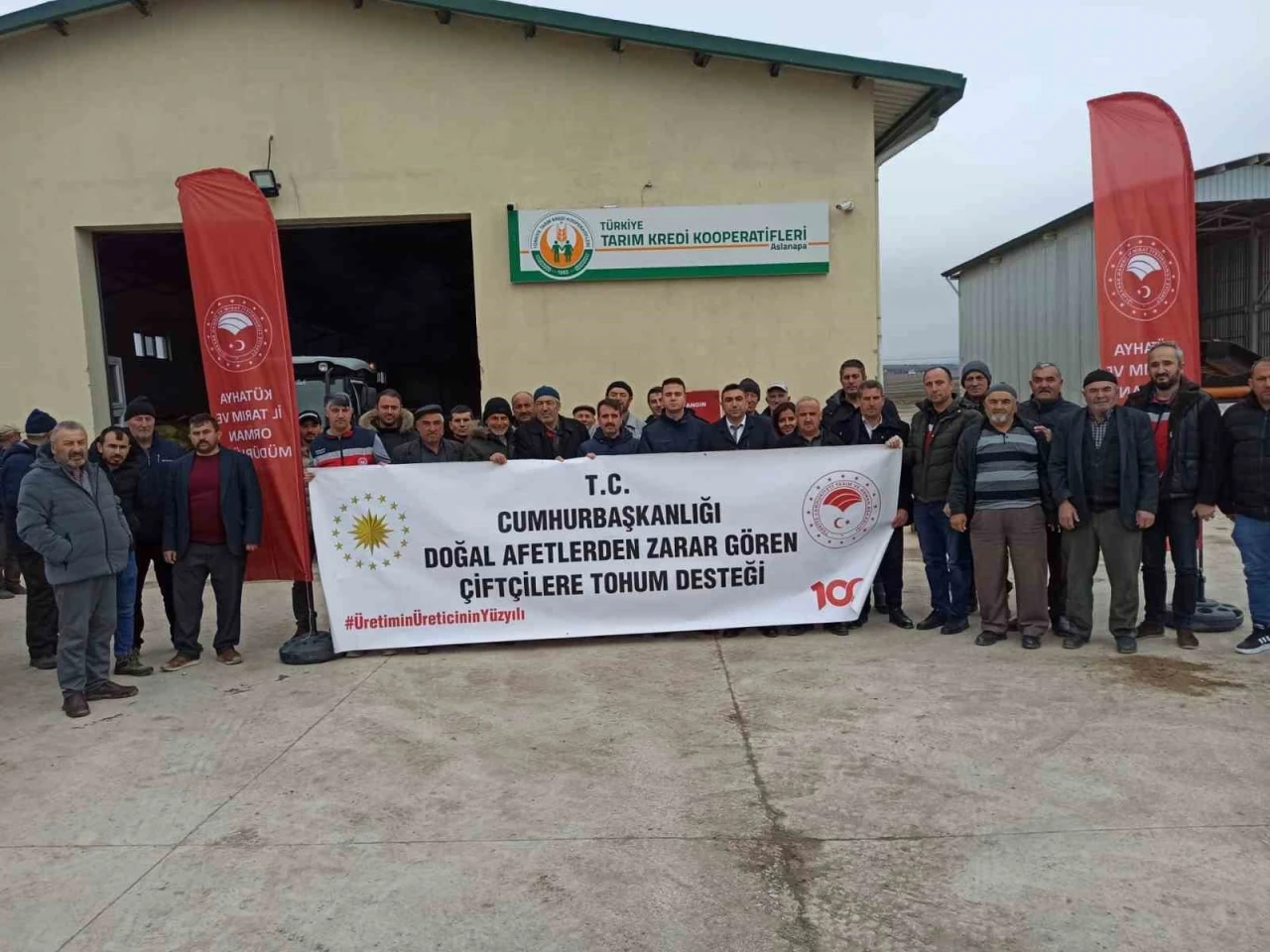 “Cumhurbaşkanlığı Doğal Afetlerden Zarar Gören Çiftçilere Tohum Desteği” programı çerçevesinde İl Tarım ve Orman Müdür Vekili Abdullah Dönmez, Aslanapa İlçe Tarım ve Orman Müdürü Alptuğ Tekeli, Aslanapa Belediye Başkanı Necati Kulik, Aslanapa Ziraat Odası Başkanı ve çiftçilerin katılımıyla bir program düzenlendi.