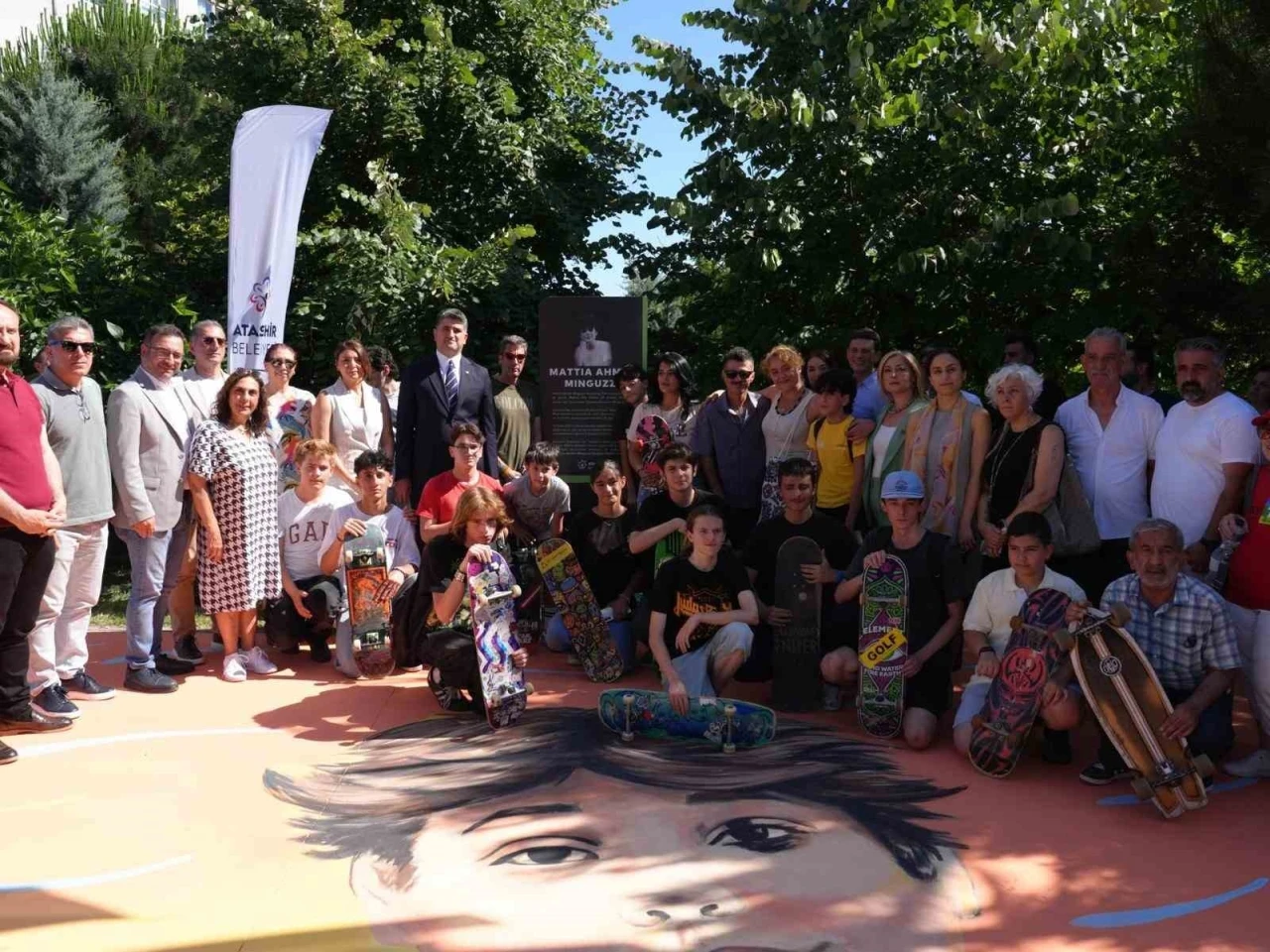 Mattia Ahmet Minguzzi Kaykay Parkı’nın açılış törenine; Ataşehir Belediye Başkanı Onursal Adıgüzel ve eşi Elif Duygu Adıgüzel’in yanı sıra, Mattia Ahmet Minguzzi’nin annesi Yasemin Minguzzi, babası Andrea Minguzzi, teyzesi Aylin İyiyazıcıoğlu, Türkiye Kaykay Milli Takımı Antrenörü Tuncay Koçal, aile yakınları, dostları, sivil toplum kuruluşu temsilcileri ve çok sayıda vatandaş katıldı.