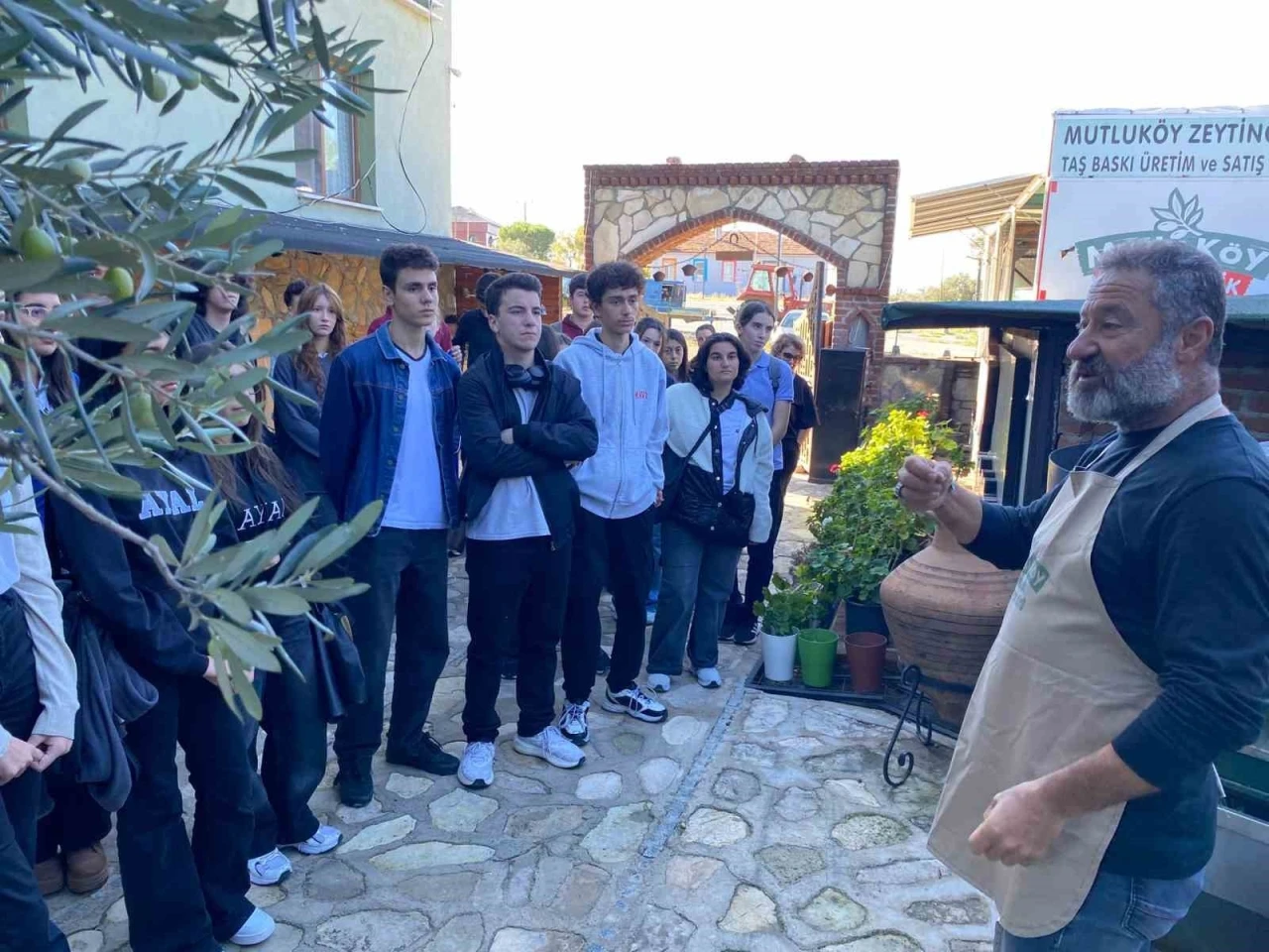 Etkinlik kapsamında, Mutlu Mahallesi’nde bulunan anıt ağaçlar, zeytinin kente ulaşım yolları ve zeytinyağı üretim teknolojilerinin tarihsel gelişimi ele alındı. Mahalle Muhtarı Erdinç Tügen, öğrencilere bölgenin kültürel ve doğal mirası hakkında bilgi verdi.
