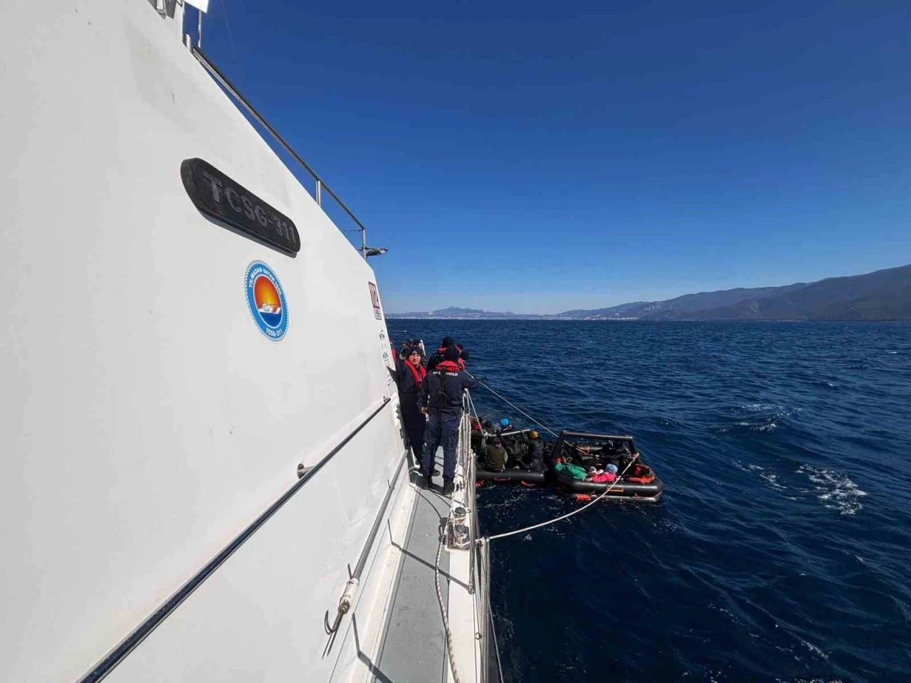 Aydın’ın Kuşadası ilçesi açıklarında can salları içerisindeki 30 düzensiz göçmen sahil güvenlik ekipleri tarafından kurtarıldı. Edinilen bilgiye göre, Kuşadası ilçesi açıklarında can salları içerisinde bir grup düzensiz göçmen olduğu bilgisinin alınması üzerine görevlendirilen Sahil Güvenlik Gemisi (TCSG-311) tarafından Yunanistan unsurlarınca Türk karasularına geri itilen 2 can salı içerisindeki toplam 30 düzensiz göçmen (beraberinde 3 çocuk) kurtarıldı. Kurtarılan göçmenler işlemlerinin ardından İl Göç İdaresi Müdürlüğü’ne gönderildiği öğrenildi.