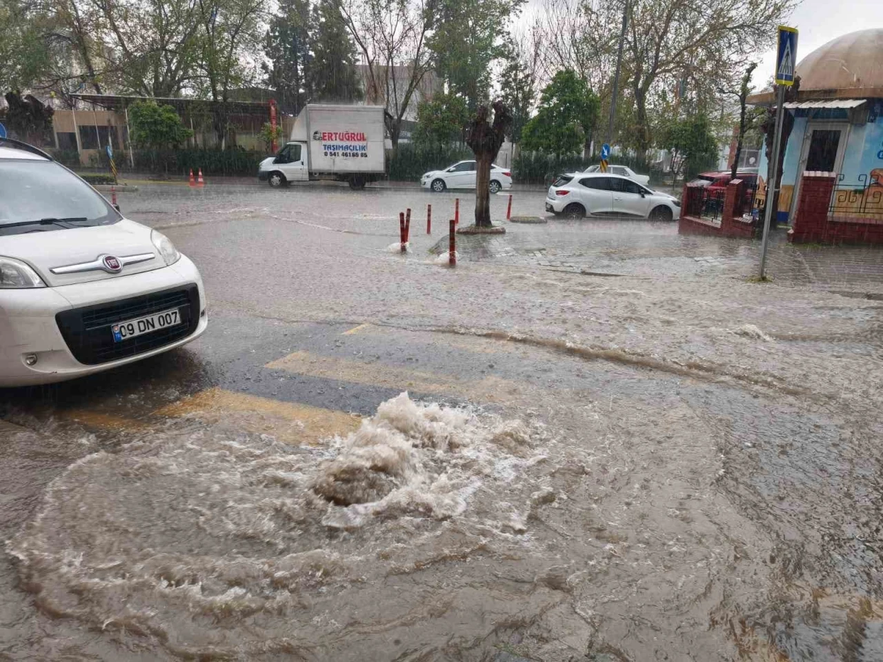 Aydın’ın Efeler ilçesinde etkili olan sağanak yağışla birlikte bazı bölgelerde su birikintileri meydana gelirken, yağmura hazırlıksız yakalanan vatandaşlar da saçak altlarına saklanmaya çalıştı. Son günlerde Aydın genelinde etkili olan sağanak yağış, bugün akşam üzeri Efeler ilçesinde etkili oldu. Dışarıya çıkan bazı vatandaşlar yağmura hazırlıksız yakalanınca saçak altlarına saklanmaya çalışırken, yer yer araç trafikleri meydana geldi. Yağışla birlikte bazı cadde ve sokaklarda ise su birikintileri oluştu. Bazı esnaflar ise dükkanlarının önlerine biriken suların işyerlerine girmemesi için çaba sarf etti. Sağanak yağışın etkili olduğu bölgelerde ise belediye ekipleri de teyakkuza geçerek vatandaşların mağdur olmaması adına hazır bekletildi. İlçe genelinde sağanak yağışın aralıklarla gece boyunca devam edeceği tahmin ediliyor.