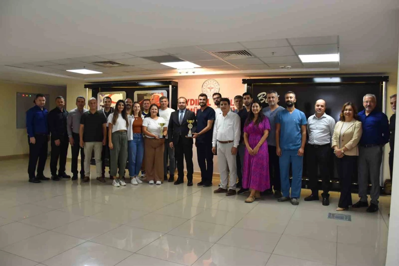 Aydın İl Sağlık Müdürlüğü Kurum Voleybol Takımı, İl Sağlık Müdürü Dr. Eser Şenkul’u ziyaret etti. Aydın Gençlik ve Spor İl Müdürlüğü koordinasyonunda gerçekleşen 15 Temmuz Şehitleri Anma, Demokrasi ve Birlik Günü ile Kamu Spor Oyunları Voleybol Turnuvası’nda kadınlar ve erkekler kategorisinde üçüncülük elde eden İl Sağlık Müdürlüğü Voleybol Takımı, İl Sağlık Müdürü Dr. Eser Şenkul’u ziyaret etti. Mimar Sinan Spor Salonu ve SKS Spor Salonu’nda bu yıl ikincisi gerçekleştirilen turnuvada kadınlar takım, rakiplerini eleyerek üçüncü oldu. Erkekler takımı ise Atatürk Spor Salonu’nda rakipleriyle karşı karşıya gelerek üçüncülük elde etti. İl Sağlık Müdürü Dr. Eser Şenkul ve İl Sağlık Müdürlüğü Hizmet Başkanları, 6 Ekim’de İzmir’de düzenlenecek olan bölge finallerine katılmaya hak kazanan takım oyuncularına kupalarını takdim ederek başarılar diledi.