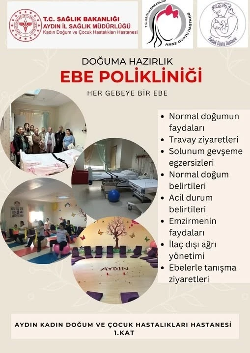 Aydın Kadın Doğum ve Çocuk Hastalıkları Hastanesi, doğum öncesi eğitim ve hazırlık hizmetlerine bir yenisini ekleyerek Ebe Polikliniği’ni açtığını duyurdu. Aydın Kadın Doğum ve Çocuk Hastalıkları Hastanesi Ebe Polikliniği’ndeki tecrübeli ebeler, gebe kadınlara doğuma hazırlık sürecinde kapsamlı bir danışmanlık hizmeti veriyor. Ebe danışmanlık hizmeti, gebelerin ihtiyaç duyduğu diğer konularda da rehberlik ederek doğum sürecine hazırlık açısından büyük bir destek sunuyor. Yeni hizmetle birlikte, normal doğumun faydaları, suda doğum, normal doğum belirtileri, ilaç dışı ağrı yönetimi, acil durum belirtileri ve emzirme konularında gebelere bilgi veriliyor. Ayrıca ebe eşliğinde doğum ünitesine yapılan ziyaretlerde, ekip ile tanışma fırsatı sağlanıyor. Aydın Kadın Doğum ve Çocuk Hastalıkları Hastanesi yetkilileri yeni hizmet sayesinde gebelerin doğum öncesi süreçlerini daha sağlıklı ve bilinçli bir şekilde geçirebileceklerini vurgulayarak tüm gebeleri Ebe Polikliniği’ne davet etti.