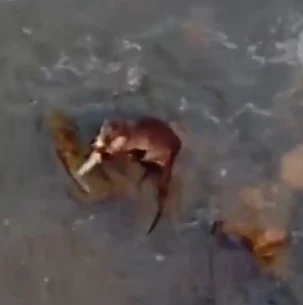 Tunceli’de, Munzur Çayında balık avlamak için yoğun çaba harcayan ve sonunda amacına ulaşan koruma altındaki su samuru, Serdar Turhan tarafından cep telefonu kamerasıyla kayıt altına alındı. Kaydedilen görüntülerden azgın suları yararak kıyıya çıkan su samuru burada bir süre gözetleme yaptı. Daha sonra tespit ettiği balığa doğru hamle yaparak yakalayan samur, balığı yedikten sonra yeniden çay sularında gözden kayboldu.