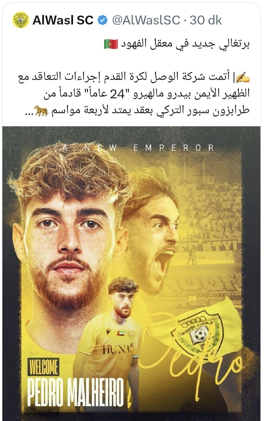 Trabzonspor’da geçtiğimiz sezon gösterdiği performans ile dikkatleri üzerine çeken 24 yaşındaki Portekizli sağ bek Pedro Malheiro, Birleşik Arap Emirlikleri’nin Al Wasl takımına transfer oldu.