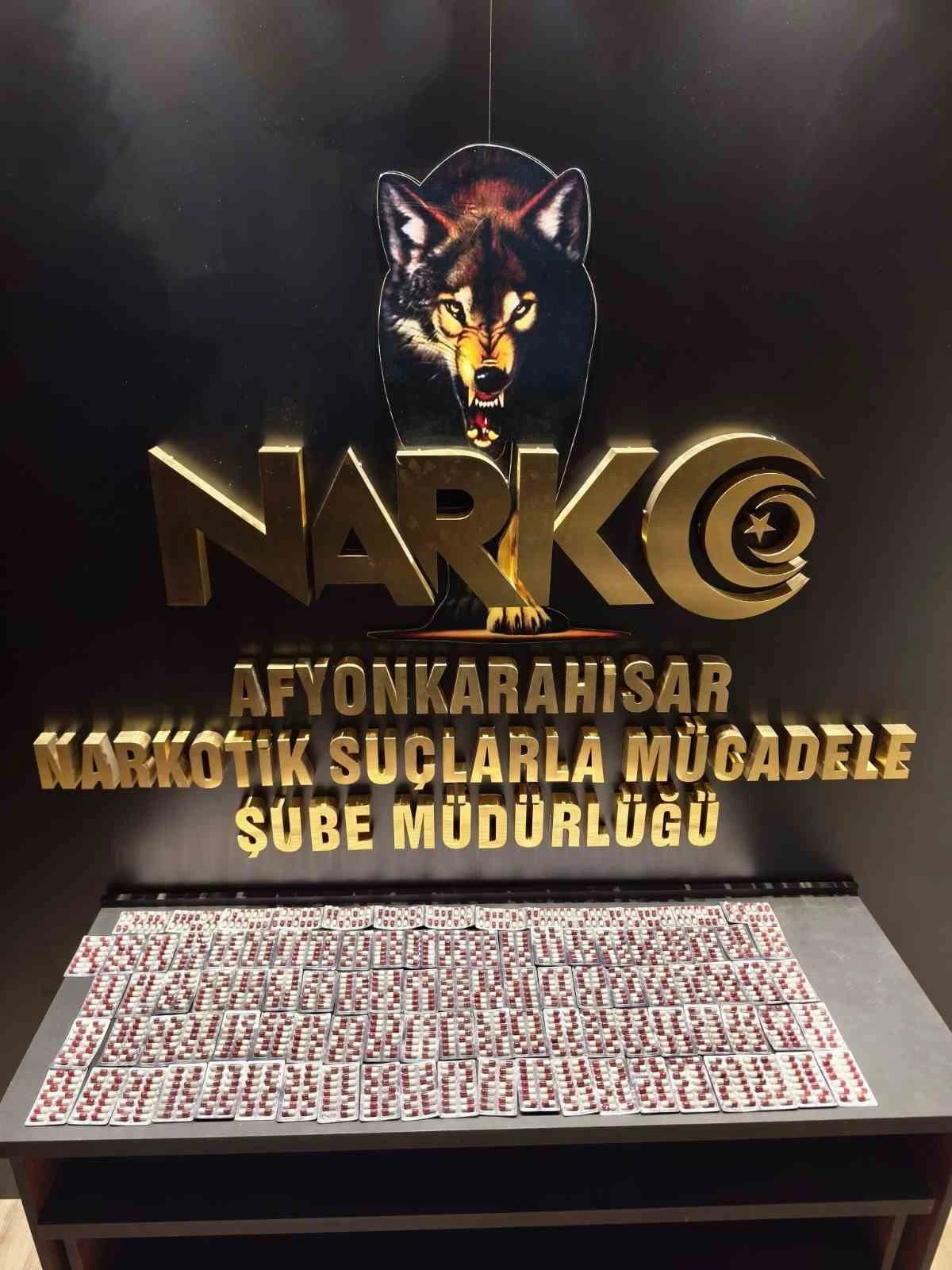 Afyonkarahisar’da polis tarafından yolcu otobüsünde yapılan aramada 1368 adet uyuşturucu hap ele geçirildi.