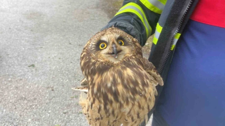 Erzincan’da bahçe çitine sıkışan baykuş itfaiye ekipleri tarafından kurtarıldı.