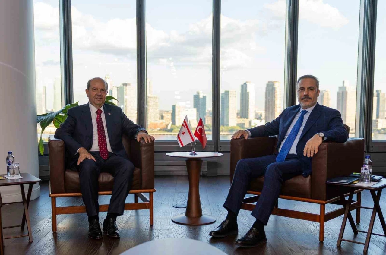 Dışişleri Bakanı Hakan Fidan resmi ziyaret kapsamında bulunduğu ABD’nin New York şehrinde Kuzey Kıbrıs Türk Cumhuriyeti (KKTC) Cumhurbaşkanı Ersin Tatar ile bir araya geldi.