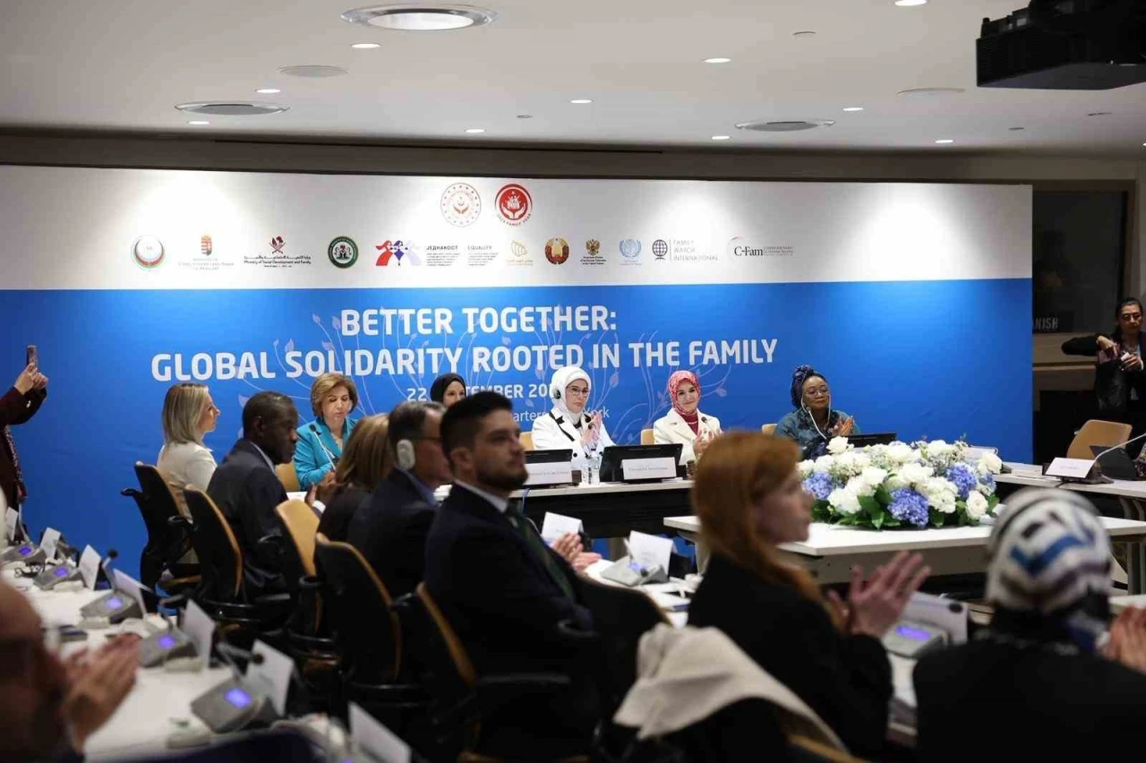 Aile ve Sosyal Hizmetler Bakanı Mahinur Özdemir Göktaş, BM Genel Merkezi’nde Cumhurbaşkanı Recep Tayyip Erdoğan’ın eşi Emine Erdoğan’ın da katılımıyla bakanlık tarafından düzenlenen ’Birlikte Daha İyiye: Aileden Başlayan Küresel Dayanışma’ temalı yan etkinlik programında bir konuşma gerçekleştirdi.