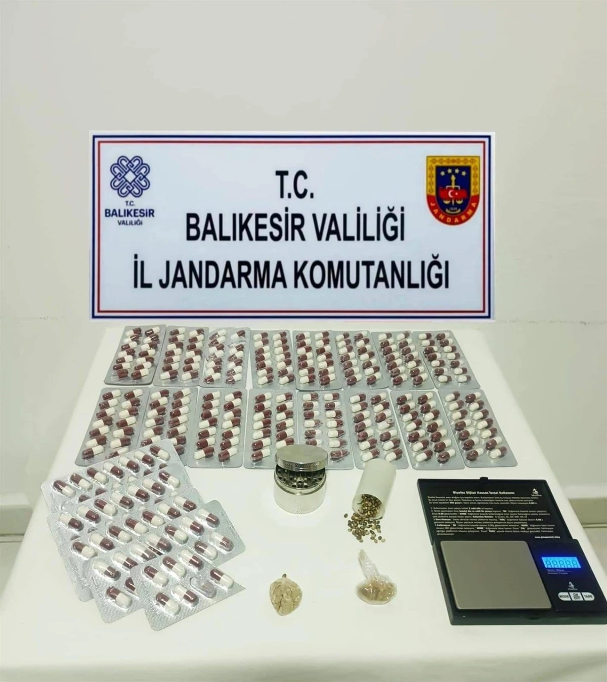 Balıkesir İl Jandarma Komutanlığı, uyuşturucu madde imal ve ticaretine yönelik yapılan istihbari çalışmalar neticesinde Balıkesir Merkez ilçesi olan Altıeylül’de uyuşturucu madde imal ve ticareti suçu işlediği tespit edilen şüphelilerin yakalanması ve suç unsurlarının ele geçirilmesine yönelik bir araç ve 2 ikamet adresinde geçtiğimiz gün arama ve operasyon gerçekleştirdi. Yapılan arama ve operasyon sonucunda; 297 sentetik uyuşturucu hap, 3 kök skunk bitkisi, 10 gram kubar esrar, 2.47 gram metamfetamin, 1.21 gram sihirli mantar (Magic Mushroom), 2.11 gram kenevir tohumu, bir hassas terazi, bir esrar öğütme aparatı, bir iklimlendirme sistemi ve 14 tarımsal ilaç ele geçirildi. Olaya karışan 2 şüpheli yakalanarak haklarında adli işlem başlatıldı.