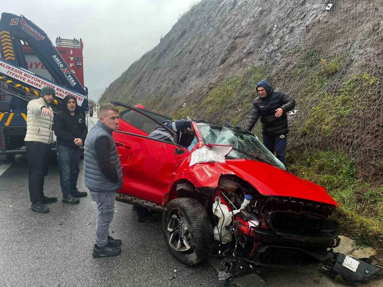 Balıkesir’de İzmir-İstanbul otoyolunda kayarak yoldan çıkan otomobilde bulunan 2 kişi yaralandı. Araçta sıkışan 2 kişi kurtarılarak sağlık ekiplerine teslim edildi.