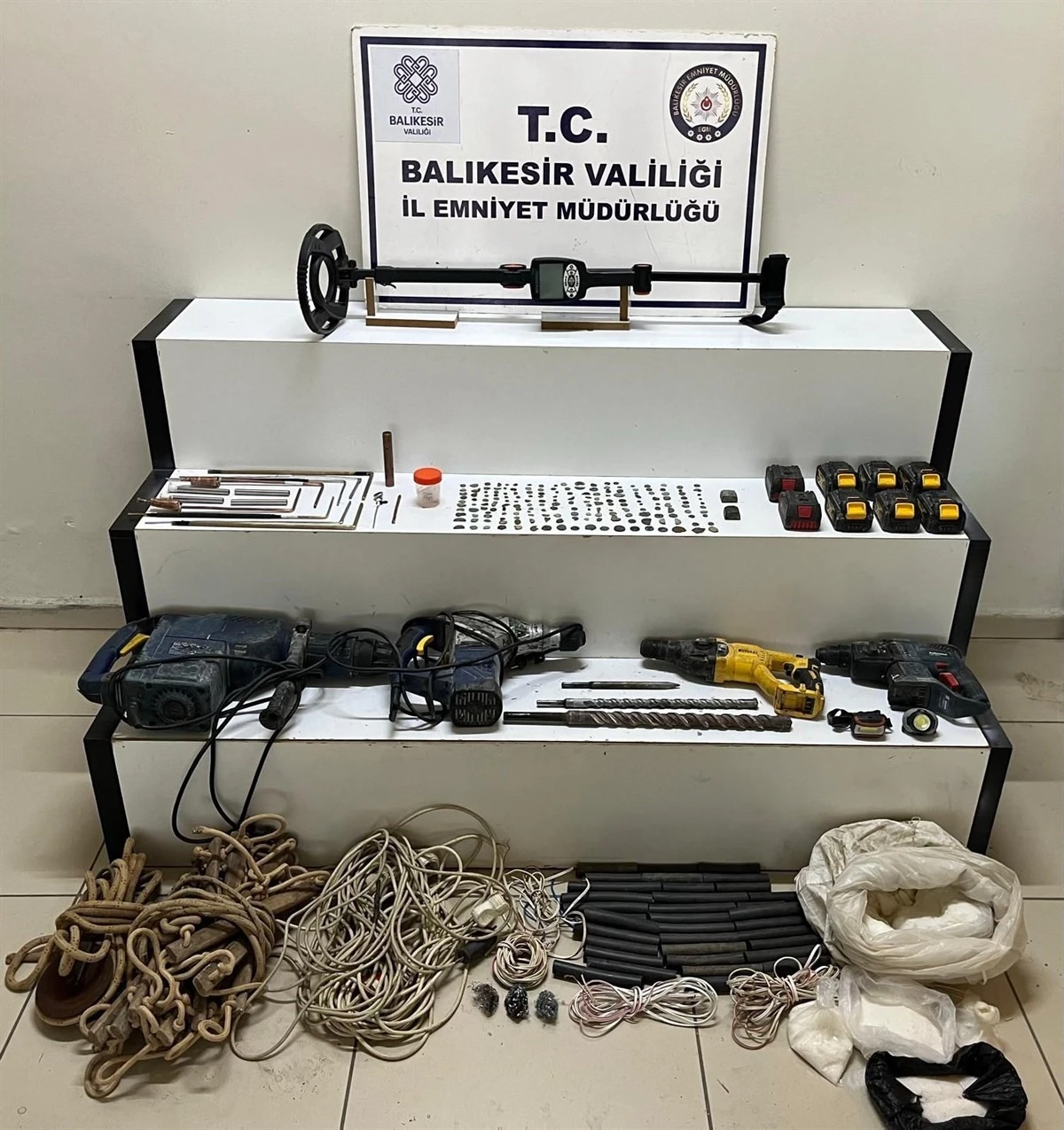 Edinilen bilgiye göre, gerçekleştirilen operasyonda farklı dönemlere ait 189 adet tarihi sikke ve obje, 1 adet elektronik el dedektörü, 1 adet manuel dedektör ve aparatları, 4 adet beton delici ve matkap, 8 adet matkap şarjı, 10.5 kilogram sodyum klorid, 6 adet çeşitli uzunluklarda kablo, 35 adet plastik boru, 3 adet kıl tel, 2 adet kafa feneri ve seyyar kablo, makaralı halat, seyyar ip merdiven ile 22 gram civa ele geçirildi. Ele geçirilen malzemelerin el yapımı patlayıcı yapımında kullanılabileceği değerlendirildi.