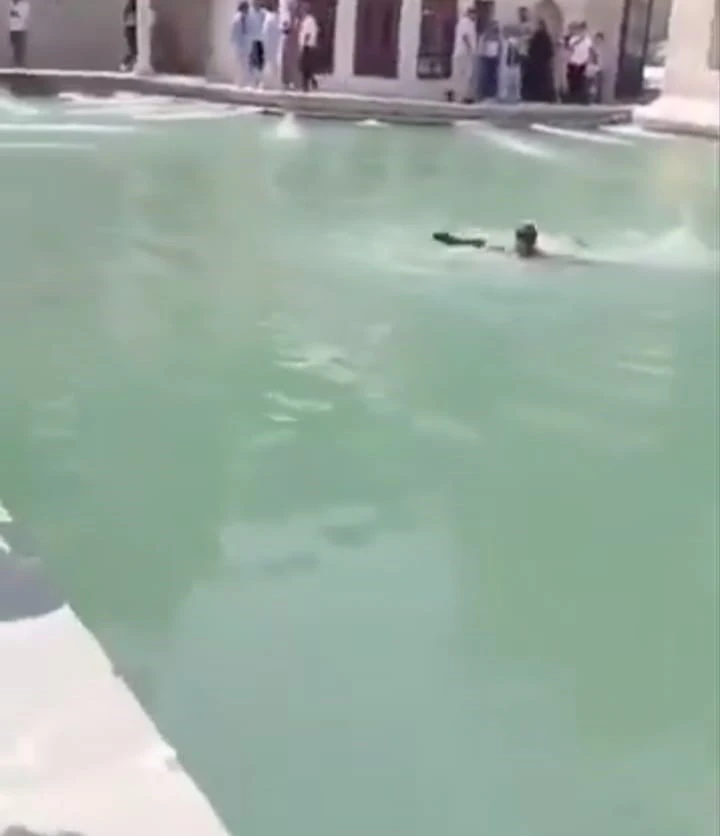 Olay, Kurban Bayramında Şanlıurfa’da yaşandı. İsmi öğrenilemeyen bir şahıs, insanların şaşkın bakışları arasında Balıklıgöl’e atlayarak yüzdü. Sudan çıkan şahıs güvenlik görevlileri tarafından yakalandı. Olay yerine çağrılan polis tarafından karakola götürülen şahıs hakkında kabahatler kanunu gereğince cezai işlem uygulandı.