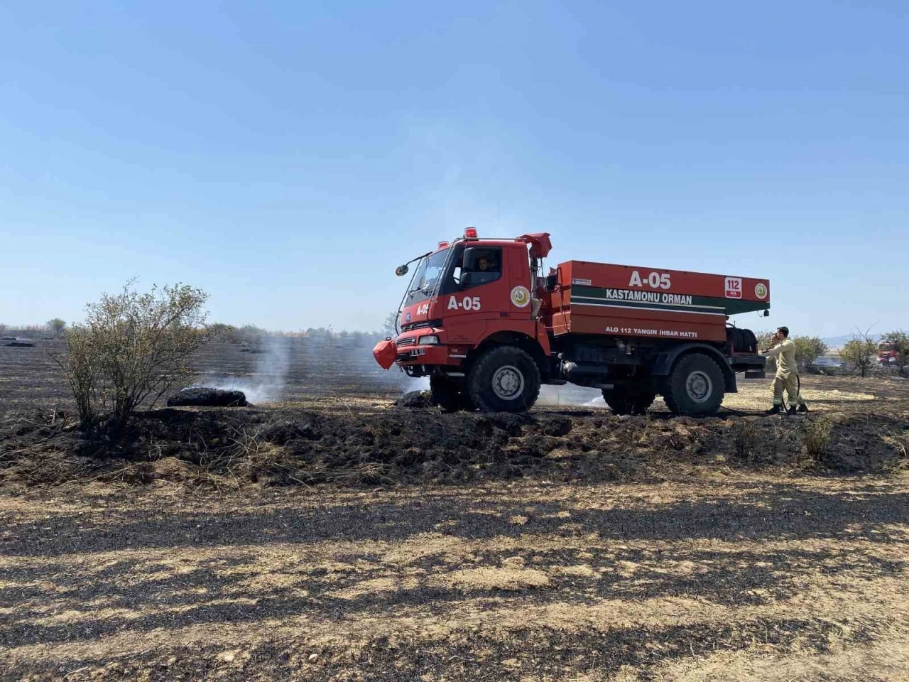 Kastamonu’da balya makinesinden kaynaklı çıkan yangınında 25’i ekili olmak üzere 40 dönüm tarım arazisi ve balyalar zarar gördü.