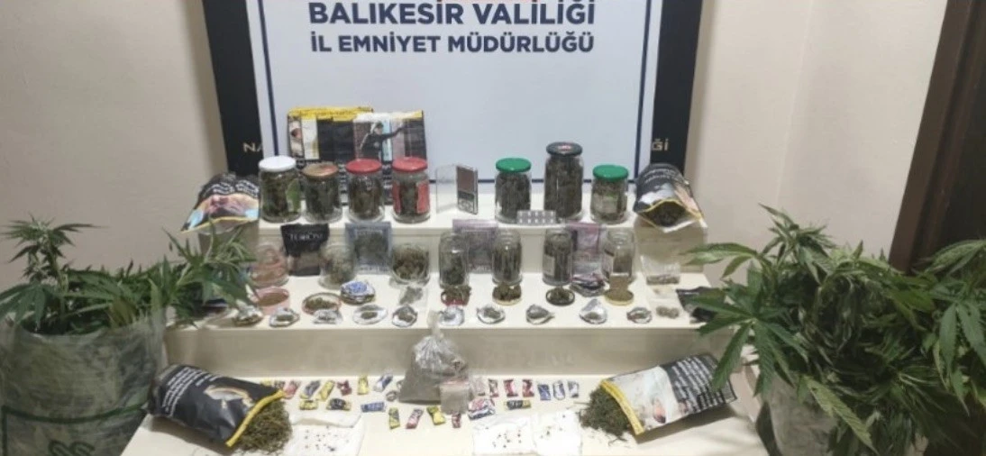 Bandırma İlçe Emniyet Müdürlüğü Narkotik Suçlarla Mücadele Grup Amirliği ekiplerince gerçekleştirilen operasyonda, yapılan aramalarda 1 kilo 216 gram esrar, 35 kök Hint keneviri, 10 adet sentetik ecza hap, 1 adet hassas terazi ve uyuşturucu madde paketlemede kullanılan çeşitli malzemeler ele geçirildi.