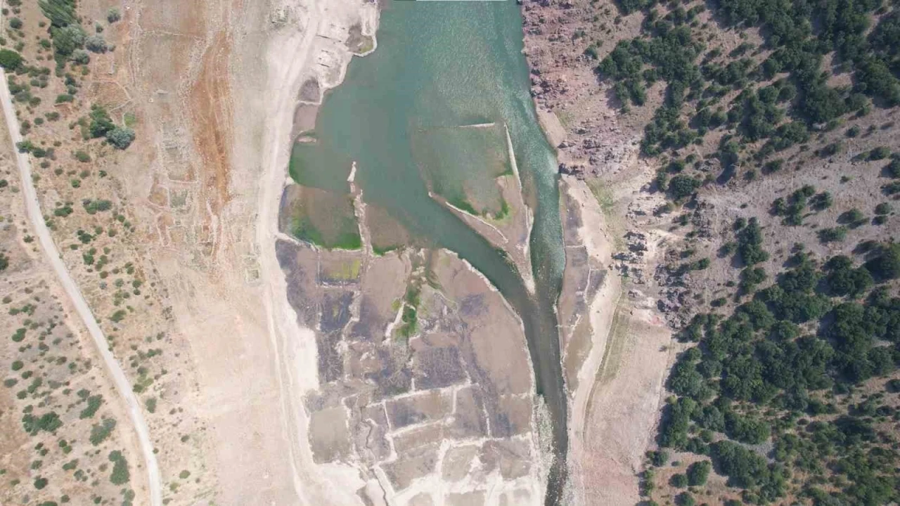 Ankara’nın içme suyu ihtiyacını karşılayan Çamlıdere Barajı’nda, kuraklık ve mevsimsel düşüş nedeniyle su seviyesi kritik seviyelere indi. Baraj sularının büyük oranda çekilmesiyle birlikte, yıllar önce su altında kalan eski bir köy yerleşimi yeniden gün yüzüne çıktı. Kuruyan bölgelerde yol izleri, taş duvar temelleri ve eski yapı kalıntıları net biçimde görünür hale geldi.