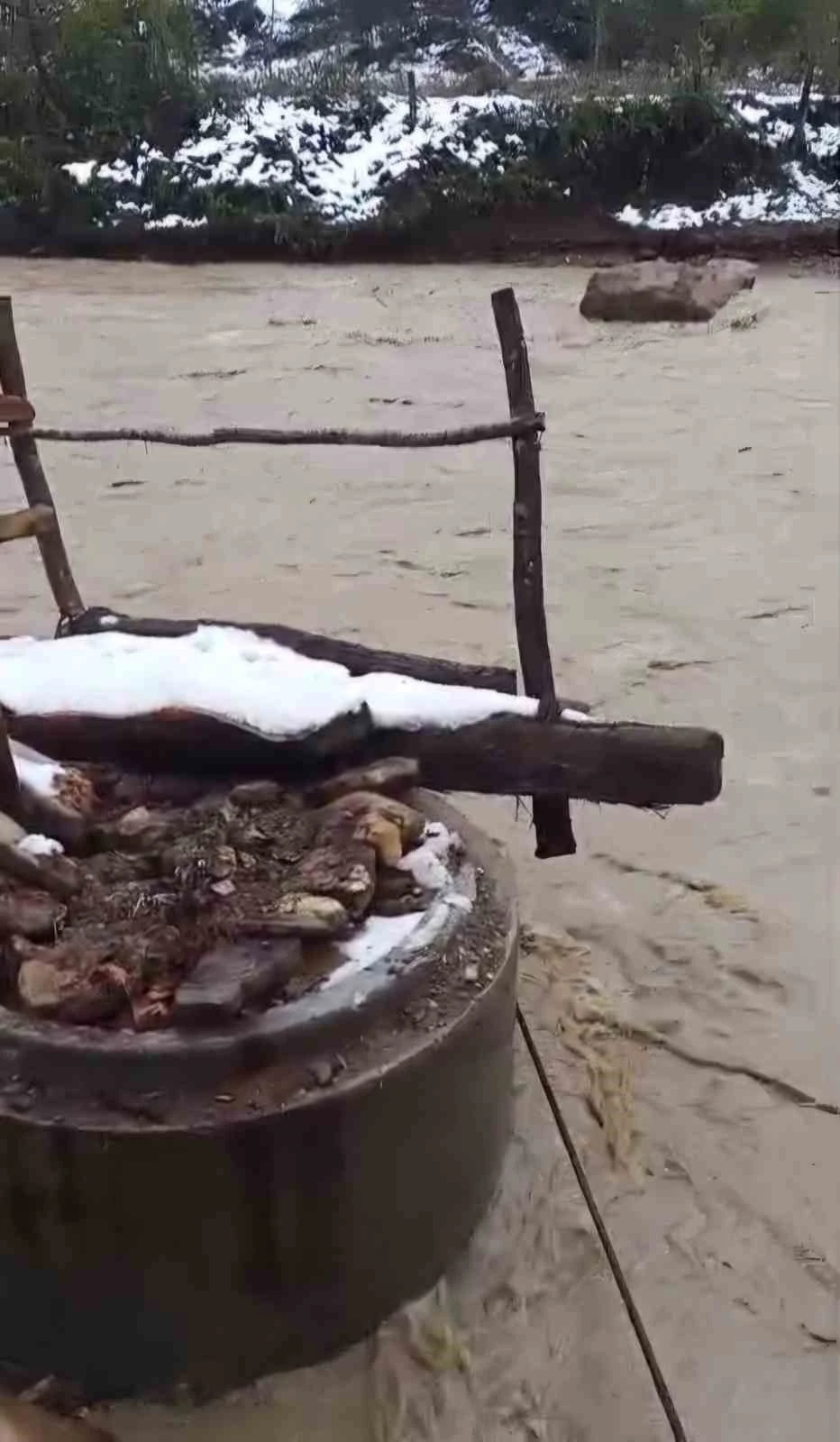 Bartın’ın Ulus ilçesinde günlerdir yağan kar ve yağmur nedeniyle dere taşarken, üstündeki köprü de yıkıldı. Köprünün yakılması nedeniyle 3 evin köyle bağlantısı kesildi.