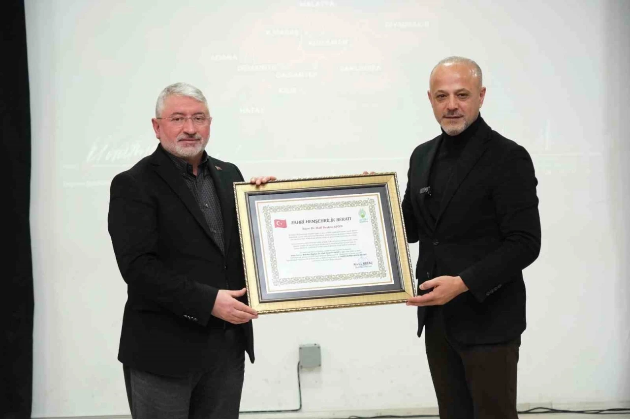 Kahramanmaraş merkezli depremlerin ardından Afşin’deki depremzedeleri yalnız bırakmayan Çorum Belediye Başkanı Dr. Halil İbrahim’a ‘asrın felaketi’ olarak adlandırılan depremlerin yıldönümünde fahri hemşehrilik belgesi verildi.