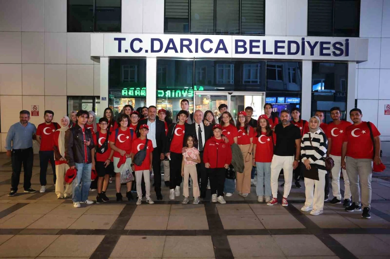 Dünyanın en büyük havacılık festivallerinden biri olan ve bu yıl Adana’da düzenlenen TEKNOFEST ziyaretçi rekoru kırarken, Darıca Belediyesi de sosyal medyadan gerçekleşen çekilişle gençleri, teknolojinin kalbinin attığı TEKNOFEST’e gönderdi. Belediye Başkanı Muzaffer Bıyık da belediye önünden gençleri dualarla Adana’ya uğurladı.