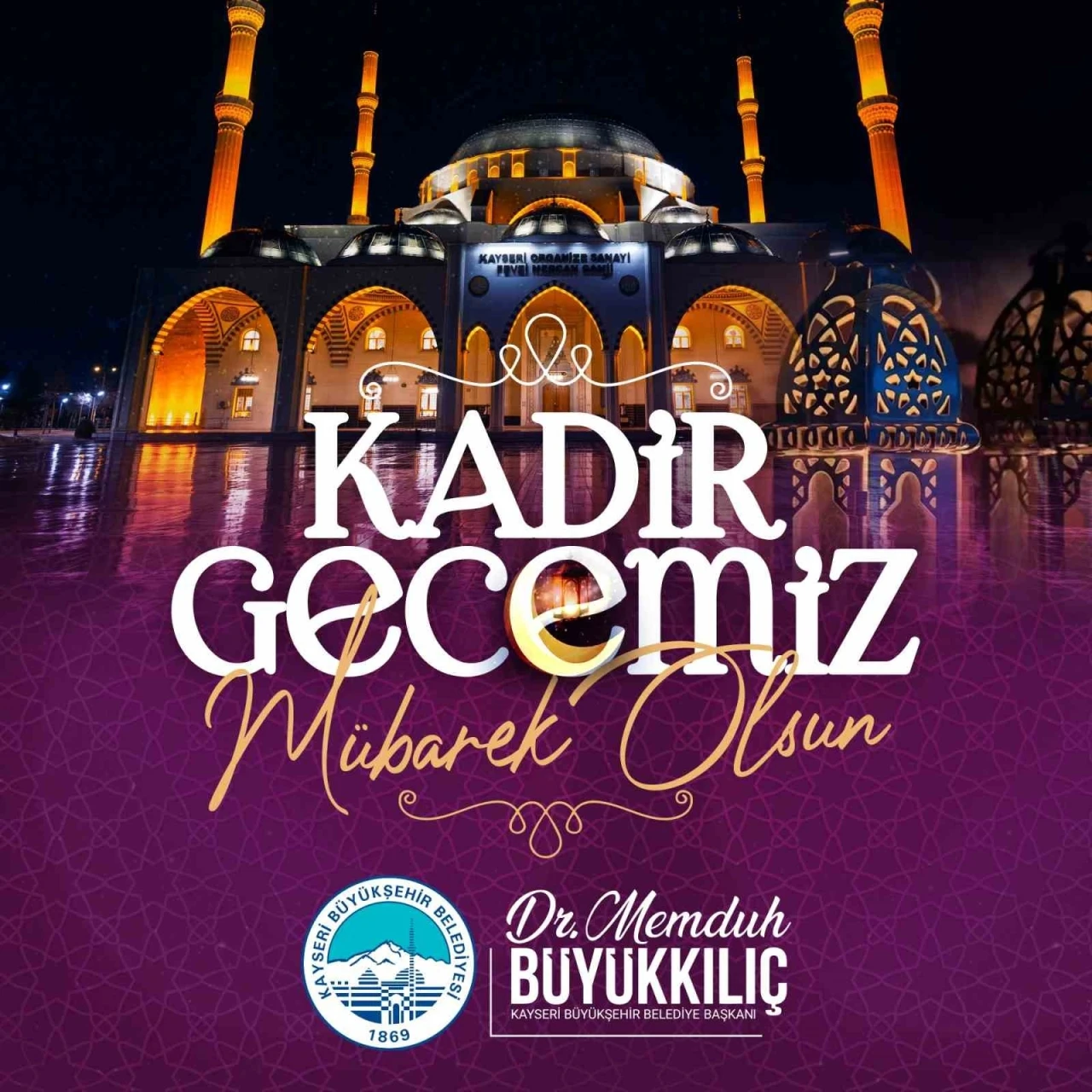 Kayseri Büyükşehir Belediye Başkanı Dr. Memduh Büyükkılıç, Kadir Gecesi dolayısıyla yayımladığı mesajda, bu mübarek gecenin tüm insanlık için barış, huzur ve birlik getirmesini diledi.