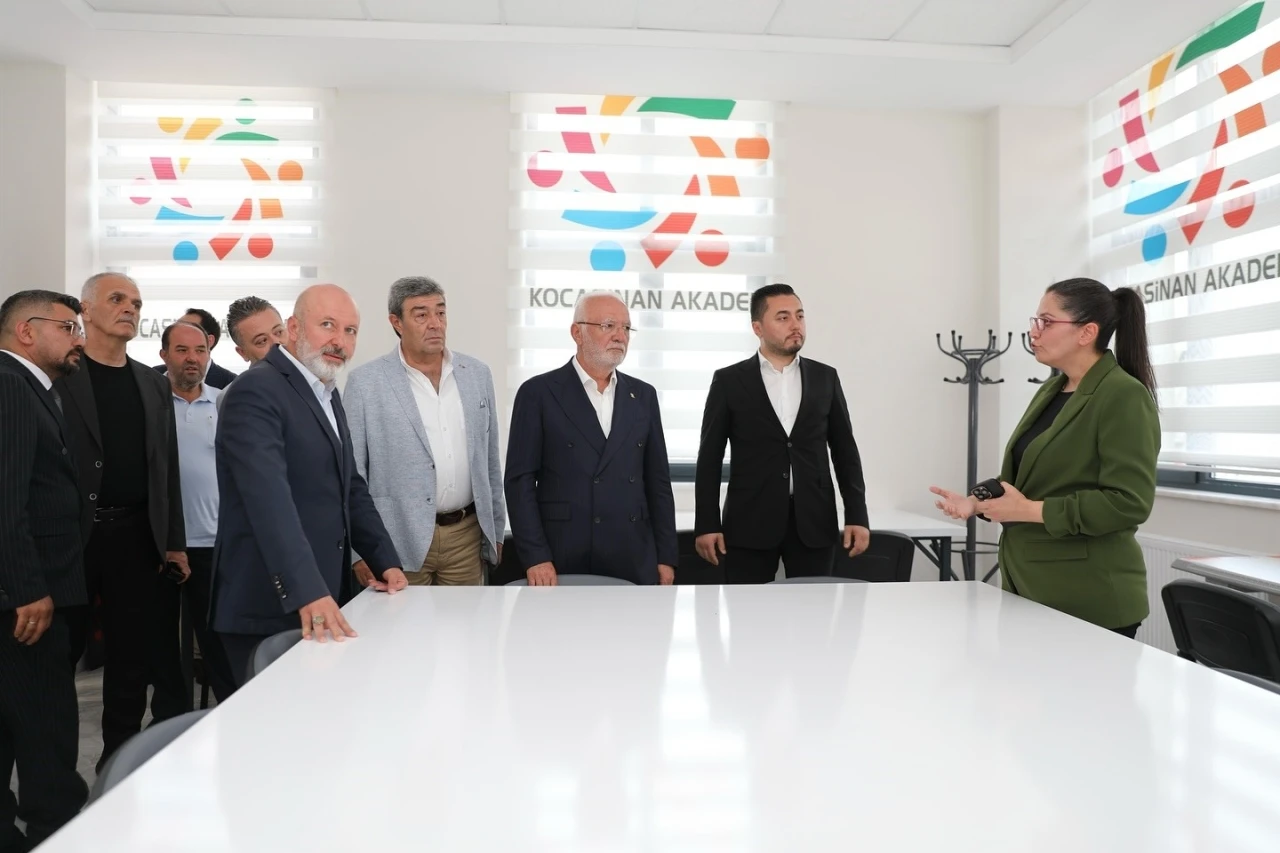 Başkan Çolakbayrakdar; AK Parti Genel Başkan Vekili Mustafa Elitaş, AK Parti MKYK Üyesi ve Kayseri Milletvekili Dursun Ataş, AK Parti İl Başkanı Hüseyin Okandan, AK Parti İlçe Başkanı Selçuk Melekoğlu ve AK Parti Genel Başkan Vekili Yardımcısı İzzet Buzkan’ı, Erkilet Ertuğrulgazi Mahallesi’nde bulunan Kocasinan Akademi Tesisinde ağırladı. Başkan Çolakbayrakdar; misafirlerine tesisi detaylı bir şekilde gezdirerek yapılan hizmetleri aktardı.