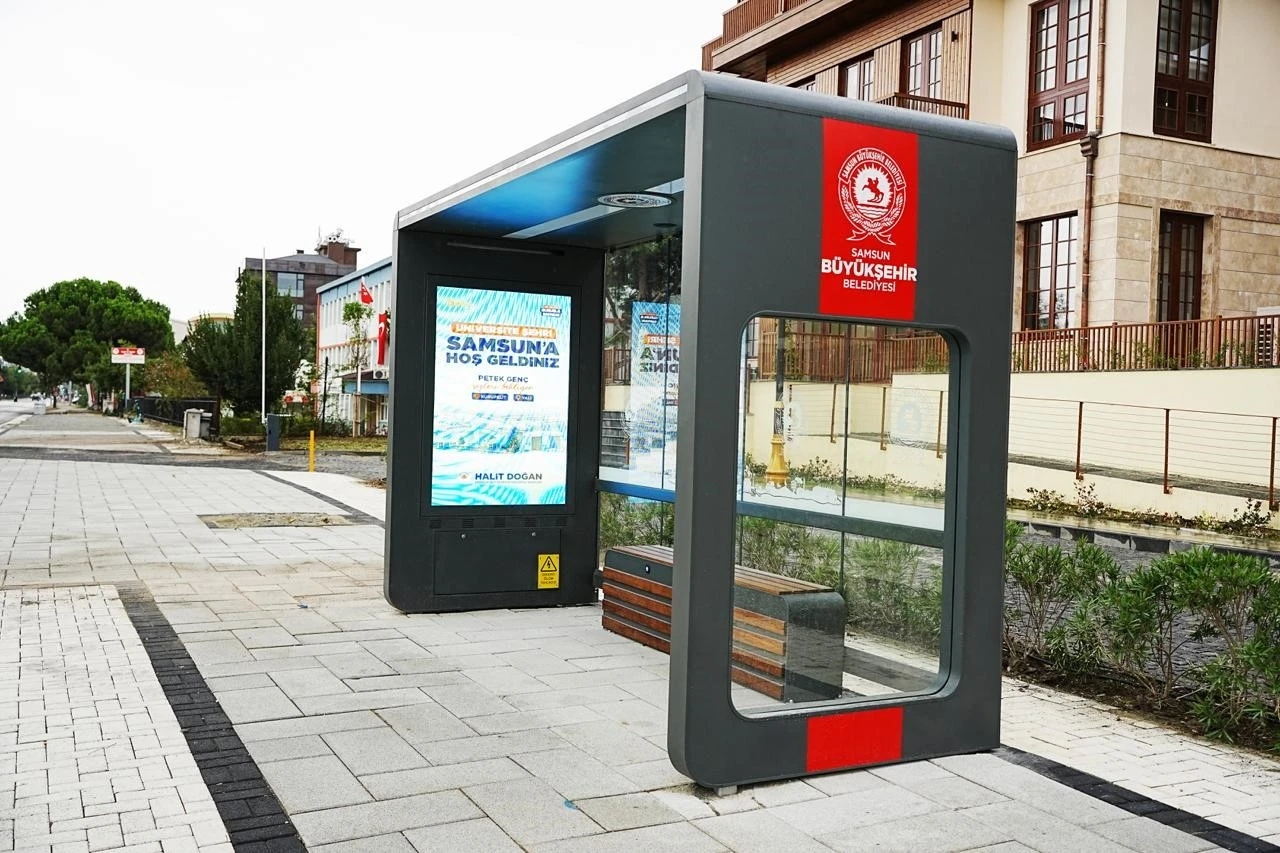 Samsun Büyükşehir Belediyesi kent içi ulaşım sistemini daha konforlu hale getirmek adına dijital dönüşüm çalışmalarını sürdürüyor. Büyükşehir Belediyesi, Samsun’un kent estetiğine uygun, modern ve teknolojik bir şehir kimliği oluşturmak adına ulaşımda ‘Yeni Nesil Durak’ dönemini başlatıyor. İlk etapta 5 noktada yeni nesil durakların kurulumu gerçekleştirildi. Toplamda planlanan 152 yeni nesil durağın montajının bir yıl içinde tamamlanması planlanıyor. Yeni nesil duraklarla birlikte durakta beklemek artık teknoloji ile buluşan bir deneyime dönüşecek. Daha teknolojik, daha konforlu