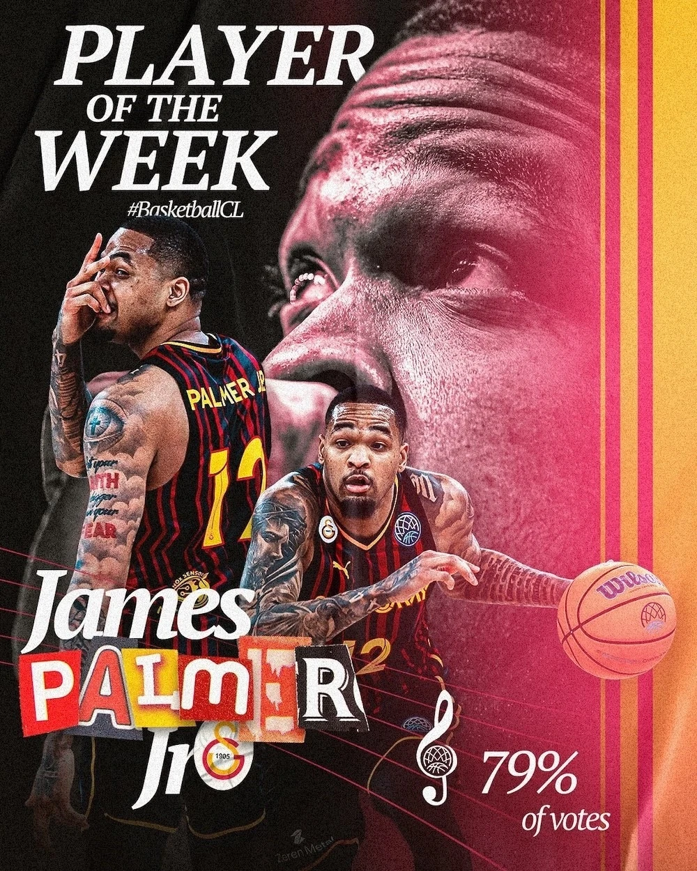 Basketbol Şampiyonlar Ligi’nde (BCL) haftanın oyuncusu Galatasaray’ın ABD’li basketbolcusu James Palmer Jr. seçildi.