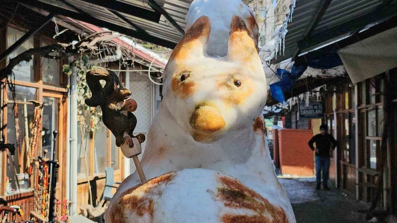 İlçede çocukluğundan bu yana baston ustalığıyla uğraşan Güllüoğlu, kardan yaptığı sincap figürüyle görenleri hayran bıraktı. Elindeki ceviz detayı, kuyruğu ve 180 santimetrelik boyu ile dikkatleri üzerine çeken kardan sincabı görenler fotoğraf çektirdi.
