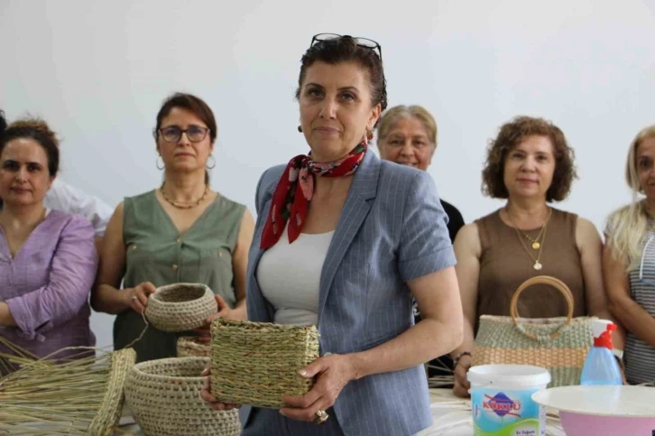 Hatay’ın İskenderun ilçesindeki Hatay Büyükşehir Belediyesi Meslek Edindirme Kurs Merkezi (HATMEK) kursiyerleri depremzede kadınlar, bataklıktan topladıkları bitkileri sanata dönüştürüyor.