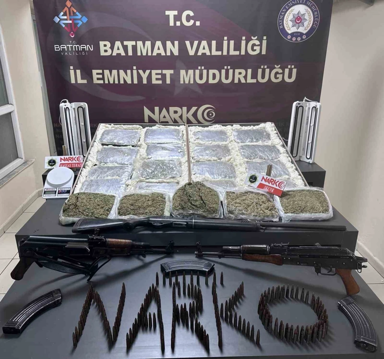 Batman’da narkotik polisi tarafından 3 adrese düzenlenen operasyonda 18 kilo 450 gram skunk madde uyuşturucu, otomatik silah ve silah mühimmatı yakalandı. Gözaltına alınan 4 kişi tutuklandı.