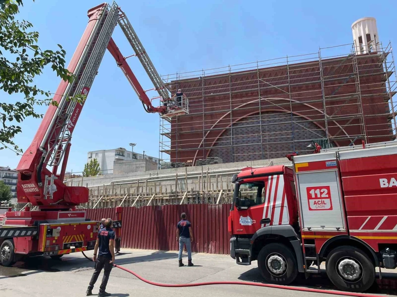 Batman’da Atatürk Parkı’na bitişik alanda yapımı devam eden cami inşaatında yangın çıktı.