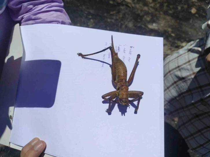 Batman’ın Sason ilçesinde yangın bölgesinde görülen 20 santimetre büyüklüğündeki etçil çekirgeyi görenler şaşkınlığını gizleyemedi.
