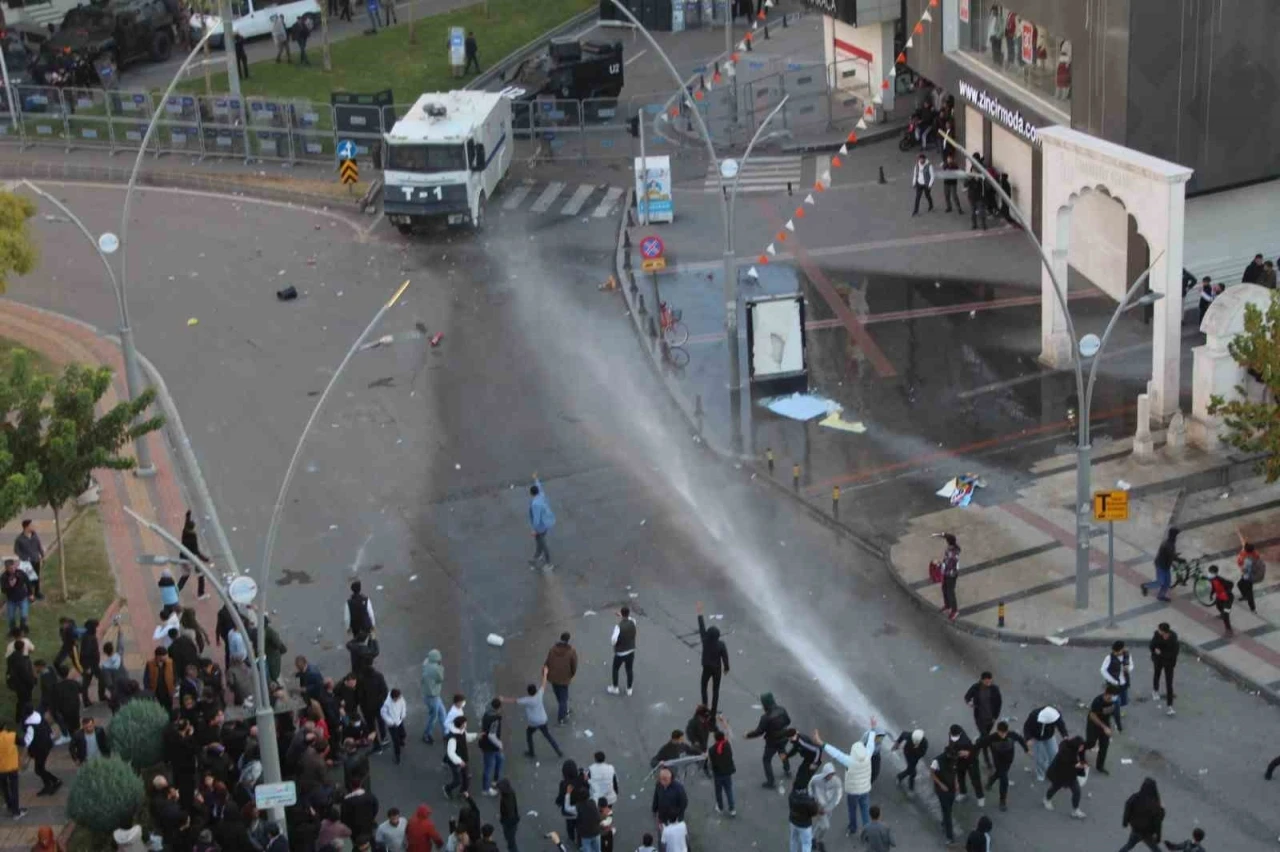 Batman’da izinsiz gösteri yapan grup sokakları taş yığınına çevirdi. Yasa dışı protestolara müdahale eden bir TOMA’nın, atılan taşlara takıldığını gören duyarlı vatandaşların, taşları temizleyerek TOMA’nın geçişini sağladığı görüldü.