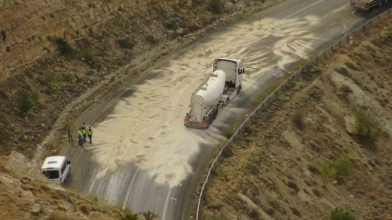 Batman’ın Gercüş ilçesinde yola dökülen madeni yağ ulaşımda aksamalara neden oldu.
