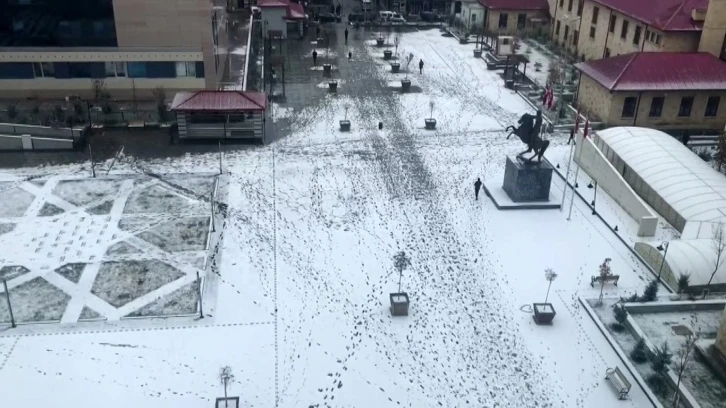 Bayburt güne kar yağışıyla uyandı. Karla birlikte soğuk hava etkisini azalttı.