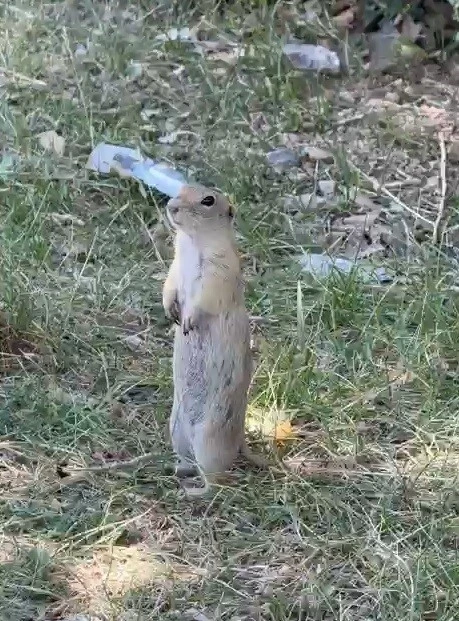 Bayburt’un Demirözü ilçesinde daha önce bisküvi yerken kameralara yansıyan Anadolu yer sincabı, bu kez arazide yiyecek ararken görüntülendi.