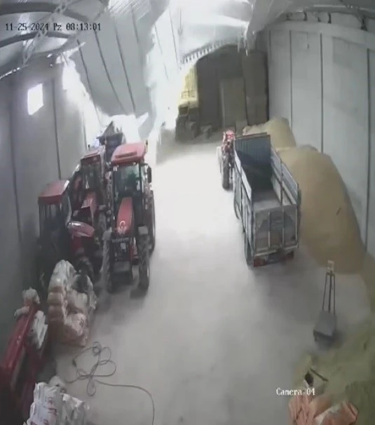 Yoğun kar yağışının etkili olduğu Bayburt’ta, deponun çatısının çökme anı güvenlik kamerasına yansıdı.