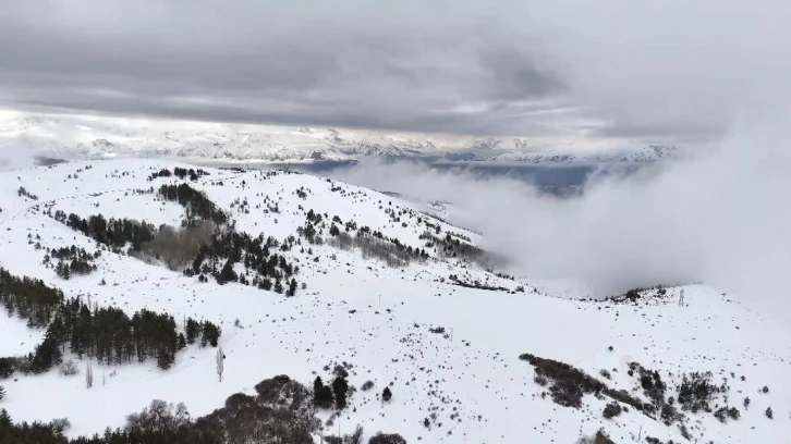 Bayburt’ta bir süredir devam eden sağanak, yüksek kesimlerde yerini kar yağışına bıraktı, dağlık alanlar karla kaplandı. Bayburt’un Aydıntepe ilçesi ile Trabzon’un Çaykara ilçesi arasında bulunan 2 bin 400 rakımlı Soğanlı Dağı eteklerindeki Dumlu, Kavlatan ve Günbuldu köyleri ile yaylalar beyaz örtüyle kaplandı. Yüksek kesimlerde kış adeta geri döndü.