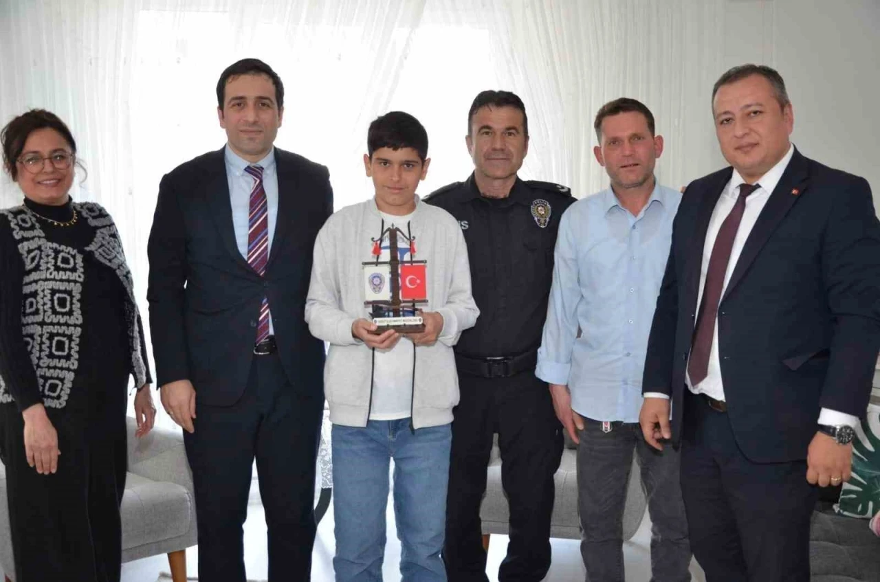 Bilecik’te geçtiğimiz gün bir polis otosunun önünde bulunan Türk bayrağının üzerinin karla kaplı olduğunu görünce eliyle karları temizleyen 8’inci sınıf öğrencisi Mustafa Berke Karabacak’ı kaymakam ödüllendirdi.