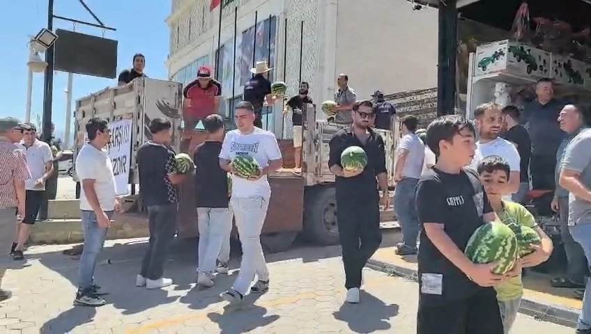 Bursa’nın İnegöl ilçesinde faaliyet gösteren bir alışveriş mağazası, dikkat çekici bir kampanyaya imza atarak müşterilerine 1 kamyon dolusu ücretsiz karpuz dağıttı.