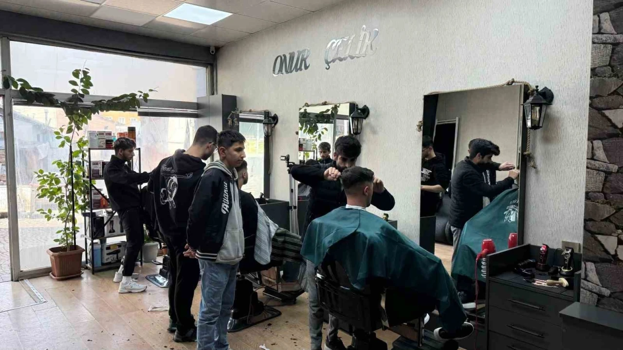 Kars’ın Sarıkamış ilçesinde Ramazan Bayramı öncesi berber ve kuaförlerde bayram yoğunluğu yaşanıyor.