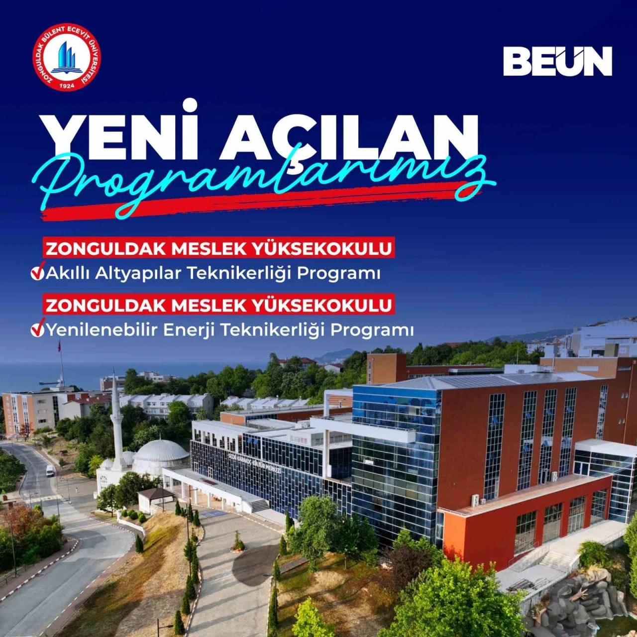 Zonguldak Bülent Ecevit Üniversitesi (BEUN), sürdürülebilir kalkınma vizyonu doğrultusunda önemli bir adıma daha imza attı. Zonguldak Meslek Yüksekokulu bünyesinde "Akıllı Altyapılar Teknikerliği" ve "Yenilenebilir Enerji Teknikerliği" ön lisans programlarının açılmasına Yükseköğretim Kurulu tarafından onay verildi.