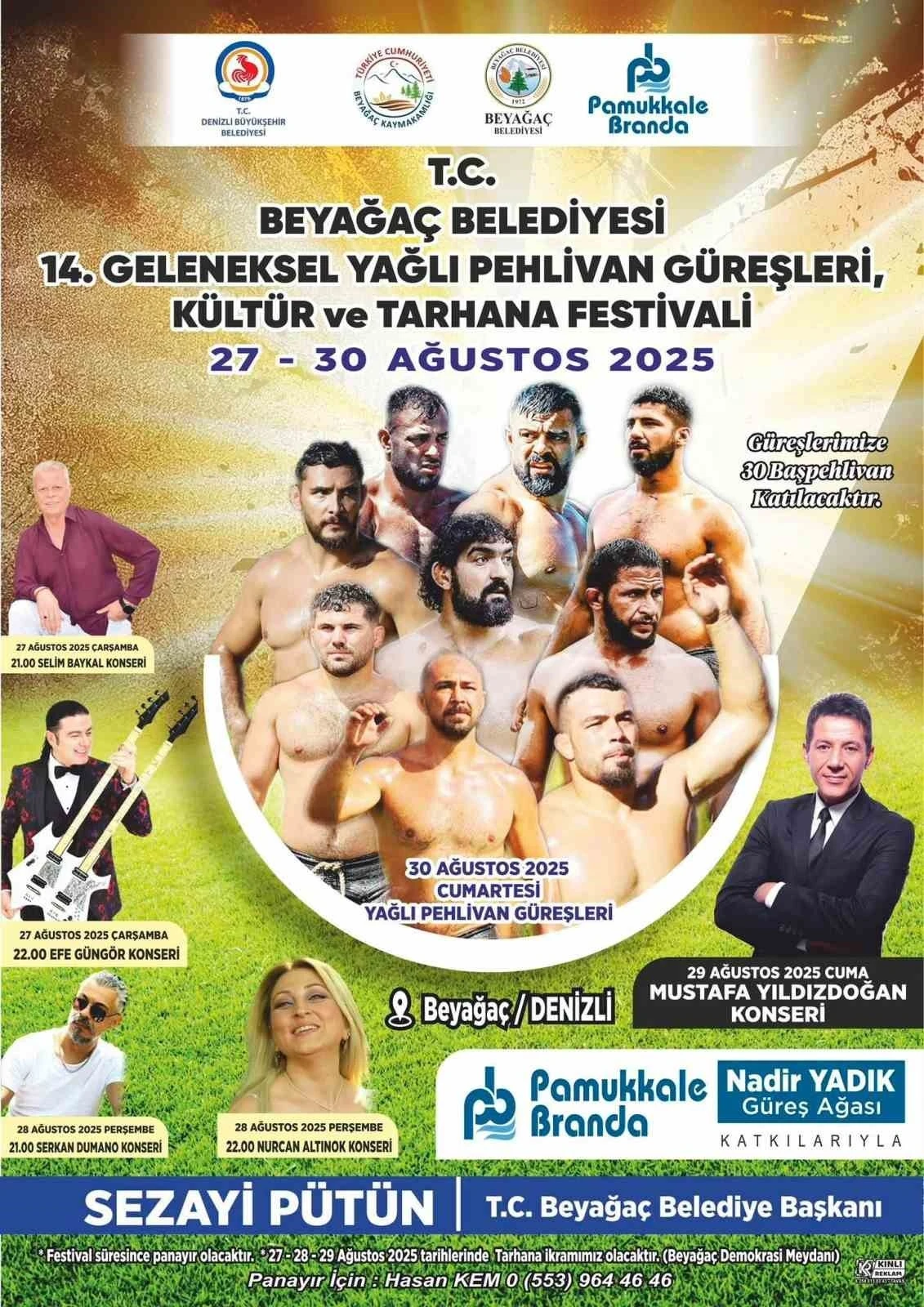 Beyağaç Belediyesi tarafından geleneksel olarak düzenlenen Yağlı Pehlivan Güreşlerinin yanında bu yıl ilk defa Kültür ve Tarhana festivali düzenlenecek. Beyağaç Belediye Başkanı Sezayi Pütün, bu yıl ilk defa gerçekleştirilecek olan Kültür ve Tarhana Festivali coşkusunu yaşamaya ve 14’üncü kez düzenlenecek olan Yağlı Pehlivan Güreşleri heyecanını yaşamaya tüm vatandaşlara davet etti. Beyağaç Belediyesi tarafından geleneksel olarak düzenlen Yağlı Pehlivan Güreşlerinin yanı sıra bu yıl ilk defa Kültür ve Tarhana Festivali düzenlenecek. Beyağaç kültürünü ve Beyağaç tarhanasını dünya markası yapmak için gerçekleştirilecek olan festivalde çeşitli etkinlikler yer alacak. Festival 27 Ağustos Çarşamba günü Beyağaç Demokrasi meydanında yapılacak olan törenle başlayıp 30 Ağustos Cumartesi günü Yağlı Pehlivan güreşleriyle son bulacak. Festival kapsamında 27 Ağustos Çarşamba günü saat 21.00’ Selim Baykal ve ardından 22.00 Efe Güngör, 28 Ağustos 2025 Perşembe günü 21.00 Serkan Dumano ve sonrasında 22.00 Nurcan Altınok ve 29 Ağustos 2025 Cuma günü sevilen sanatçı Mustafa Yıldızdoğan sahne alacak.