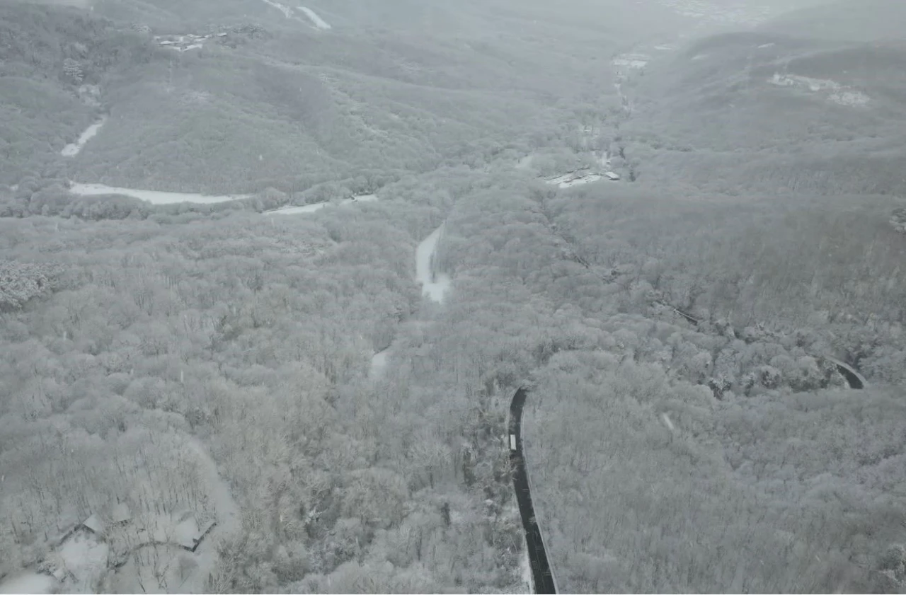 İstanbul Sarıyer’de etkili olan kar yağışı her yeri beyaz örtü ile kapladı. Kartpostallık manzara havadan görüntülendi.