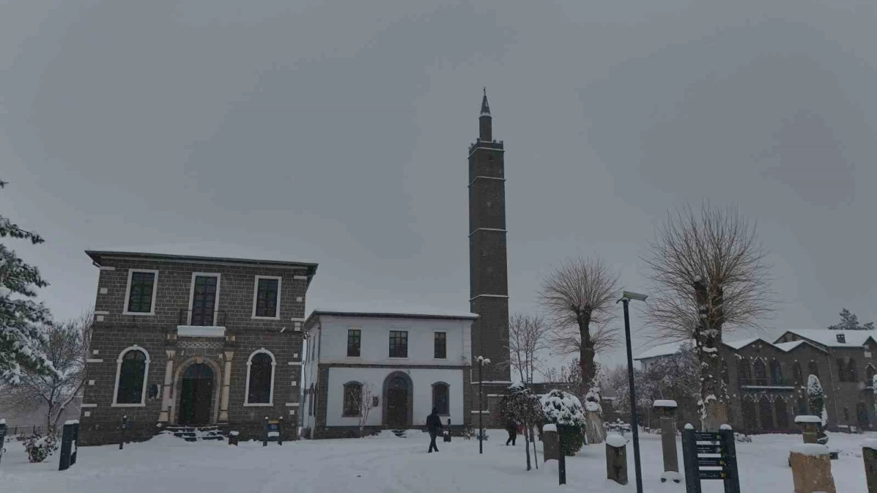 Dünyada 10 bin yıllık tarihiyle en eski ikinci yerleşim yeri olarak bilinen Diyarbakır’ın merkez Sur ilçesi beyaza bürünürken, tarihi yapılar dronla görüntülendi.